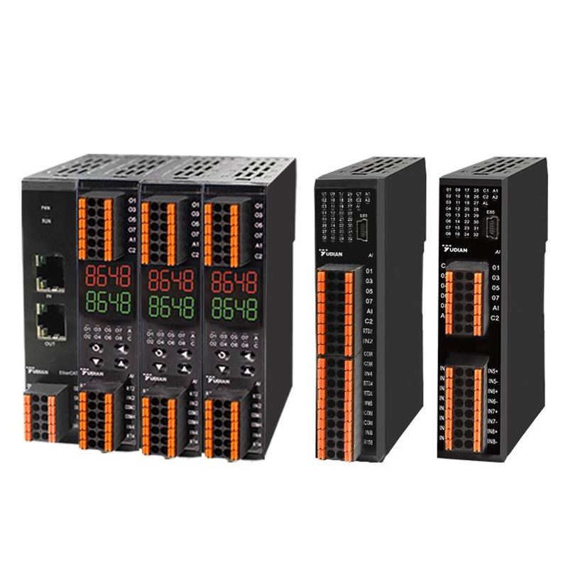 ●通讯方式:底部 RS485 总线端子;支持 MODBUS-RTU 协议;波特率 4800~115200 可调;底部 RS485 总线端子可与本公司 TCP-MODBUS 和 EtherCAT 通讯控制器连接,支持相关通讯协议;主机与从机及扩展模块之间采用内部专用通讯协议,可靠通讯距离 30m;通讯延时:串联接法时每个输入或输出扩展模块节点通讯延时约 10mS(包含数据传输时间);